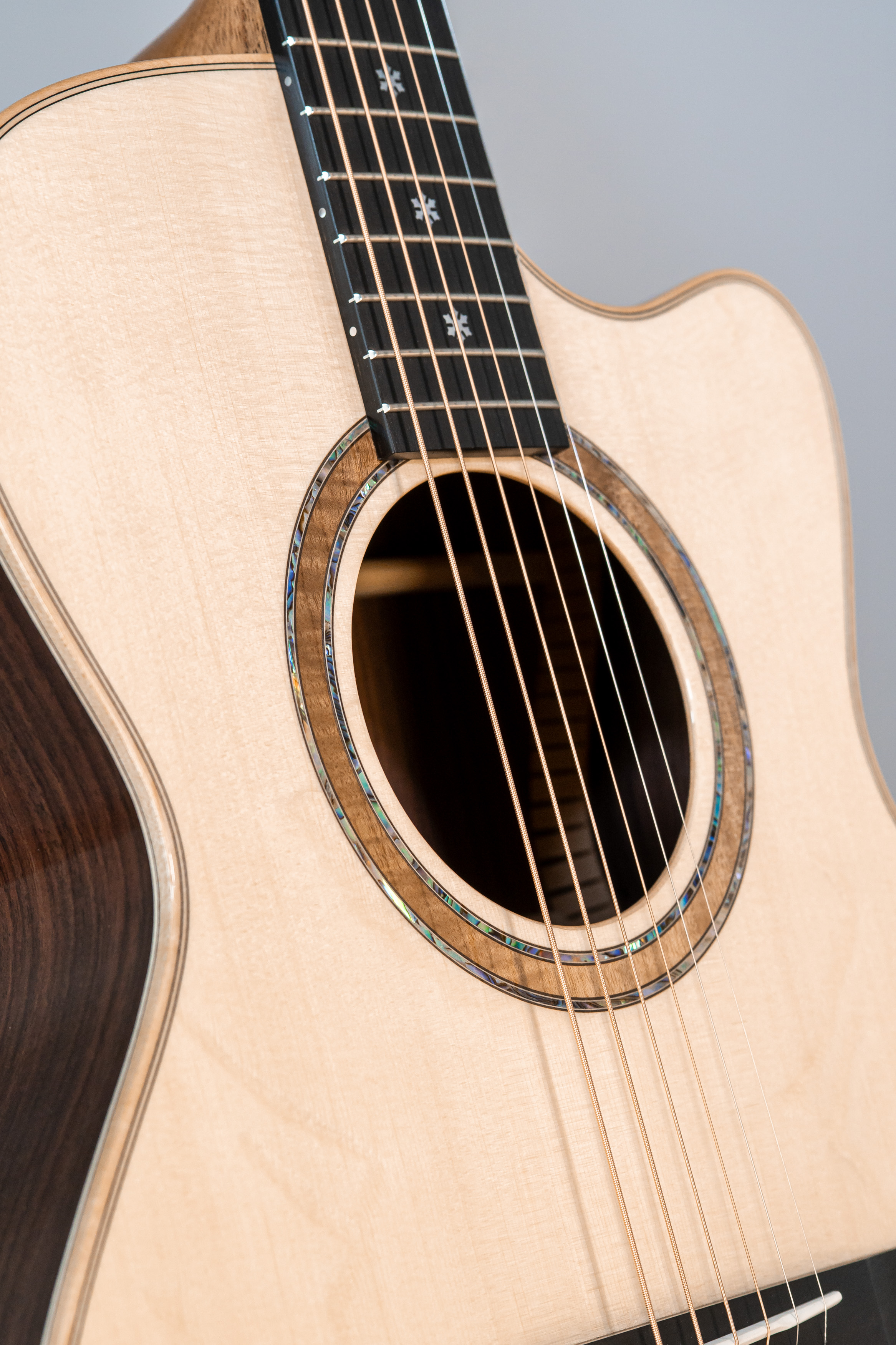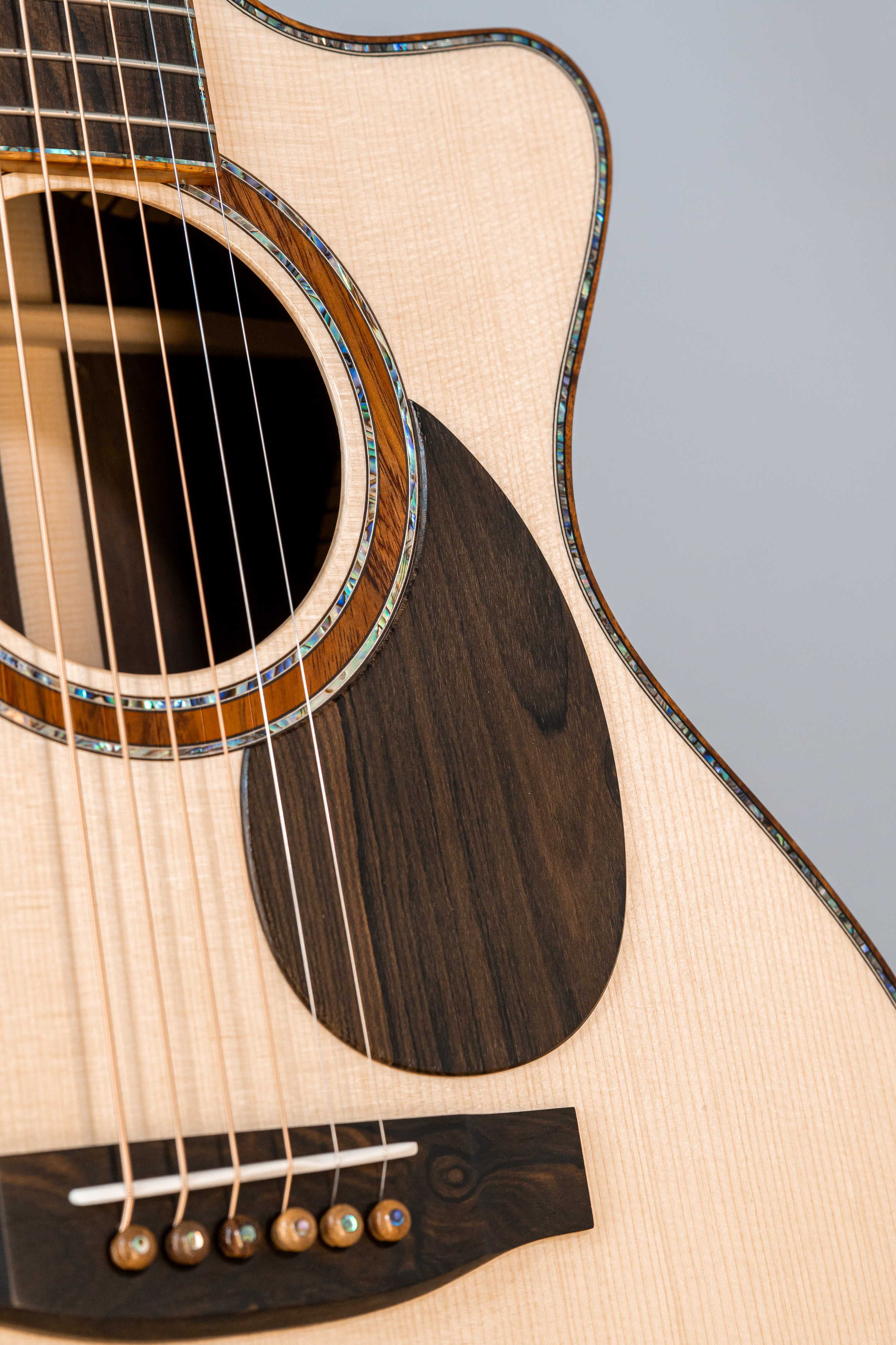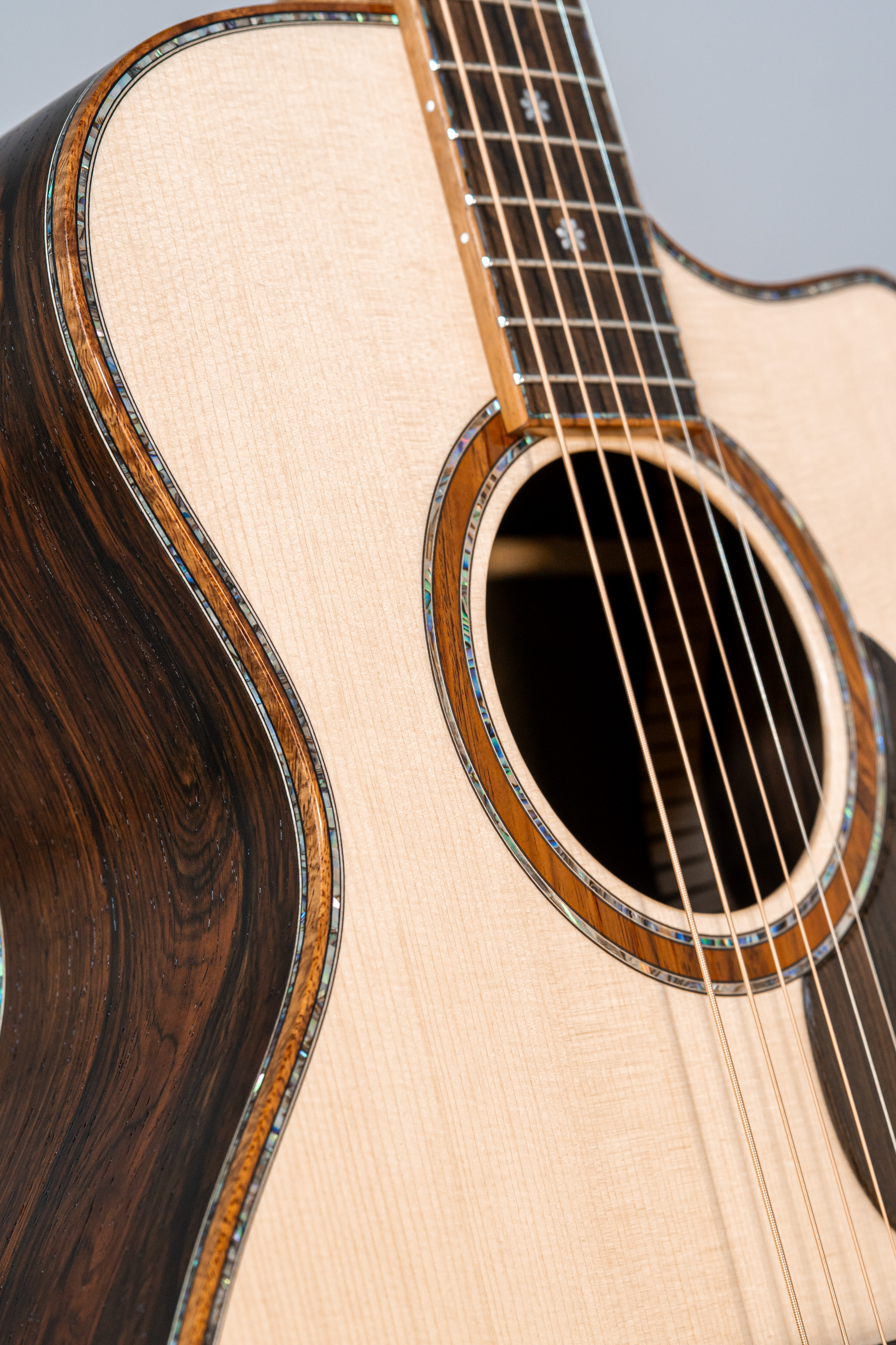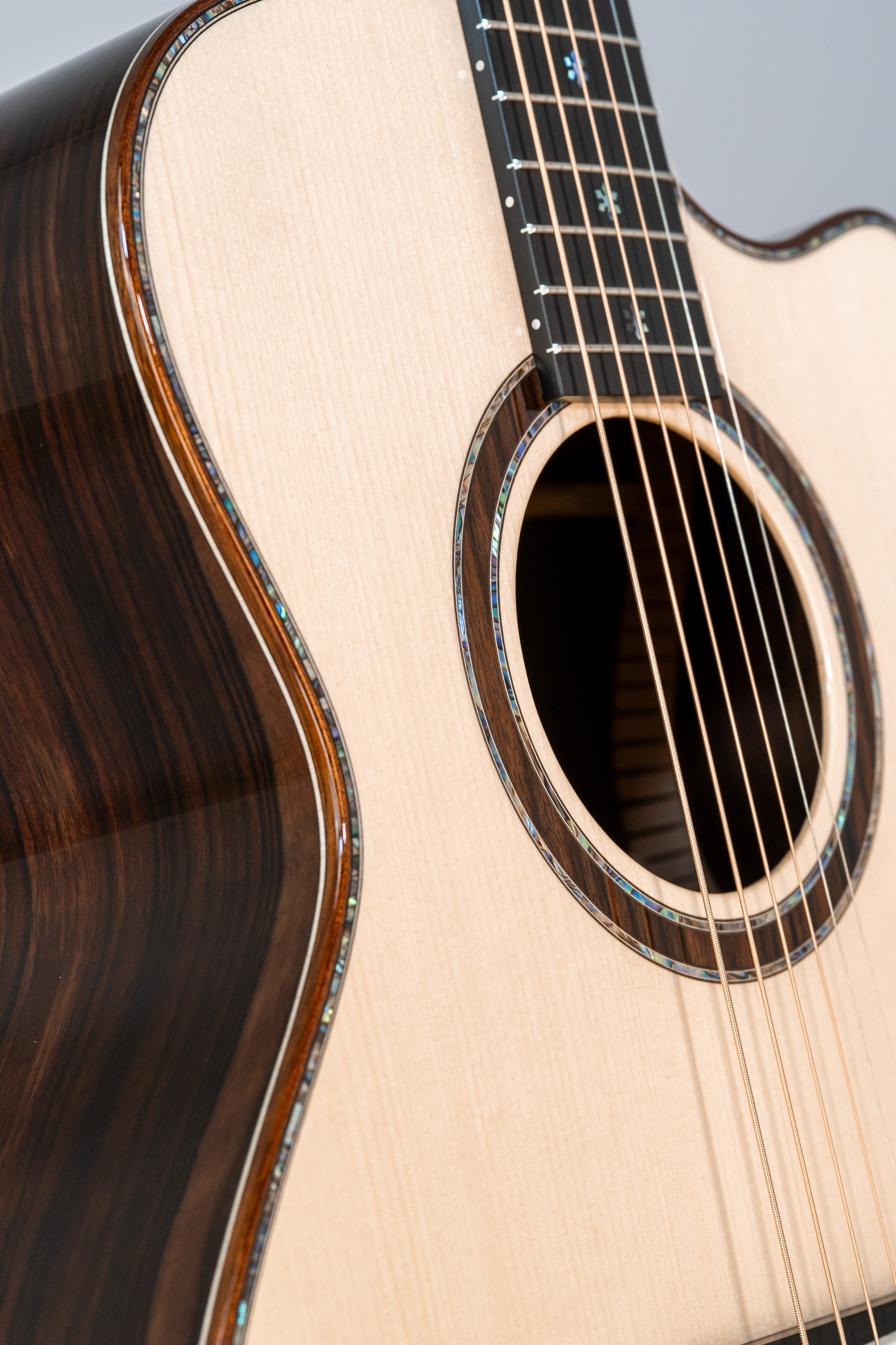 - Abalone-Einfassung der Decke bei Cutaway-Gitarren