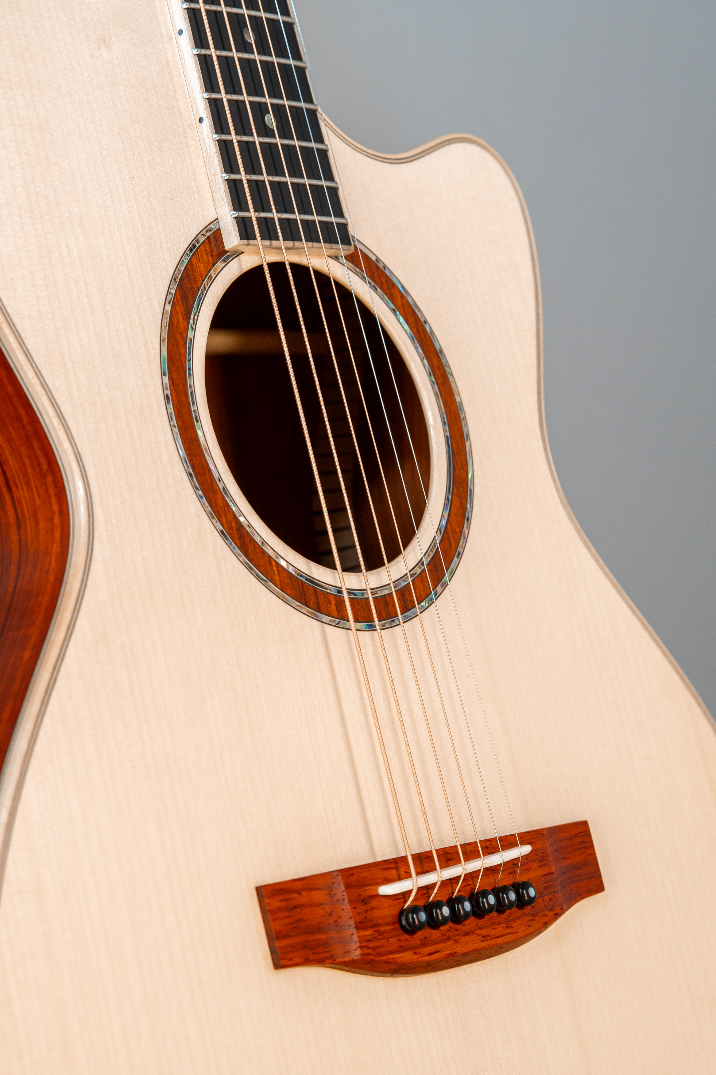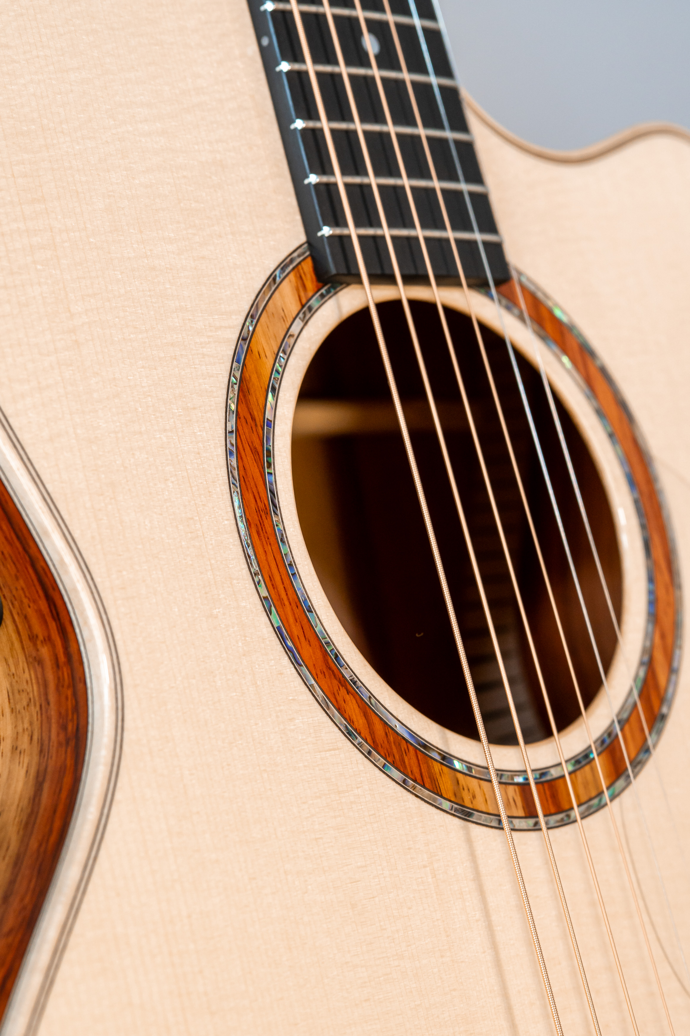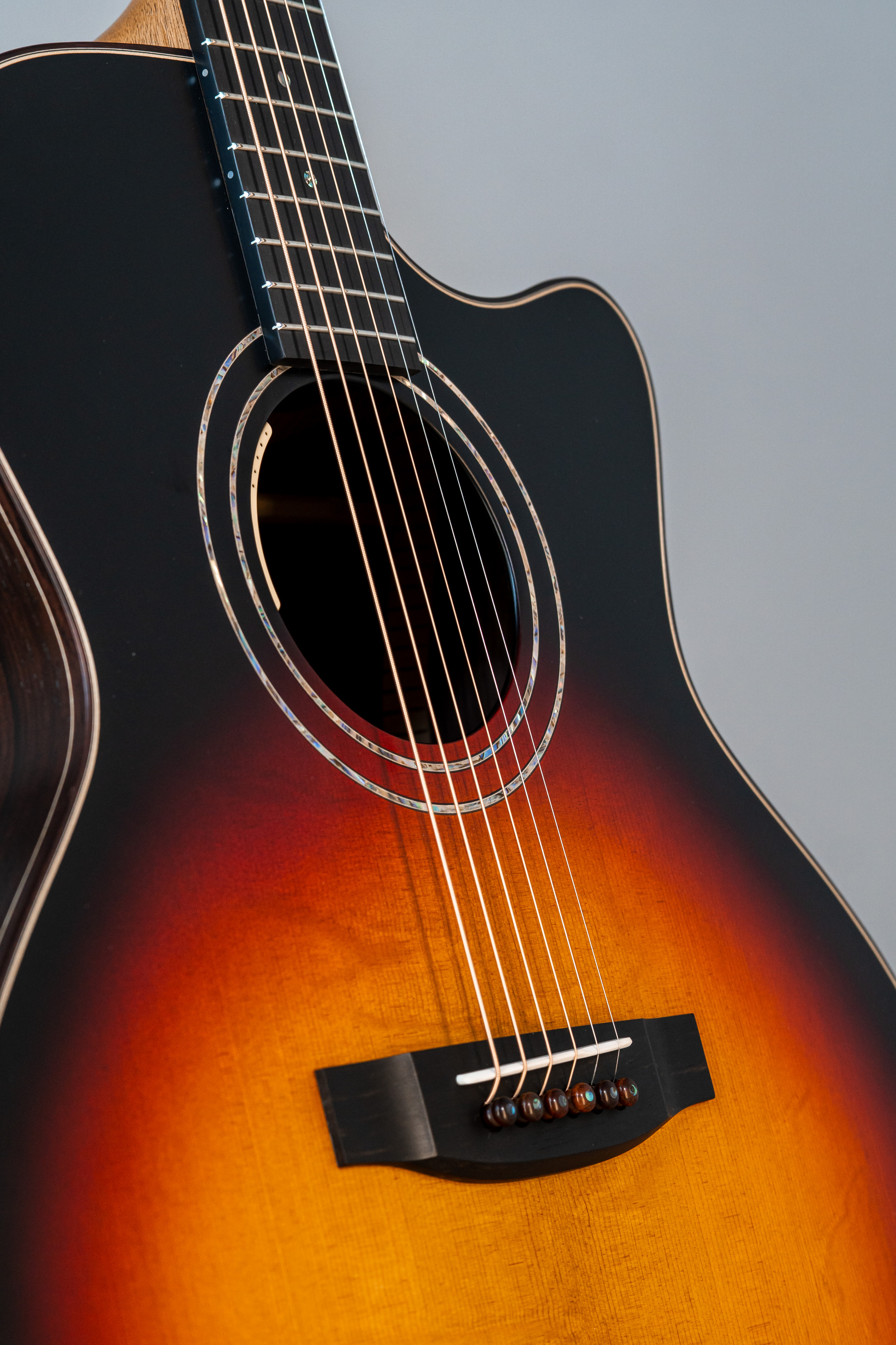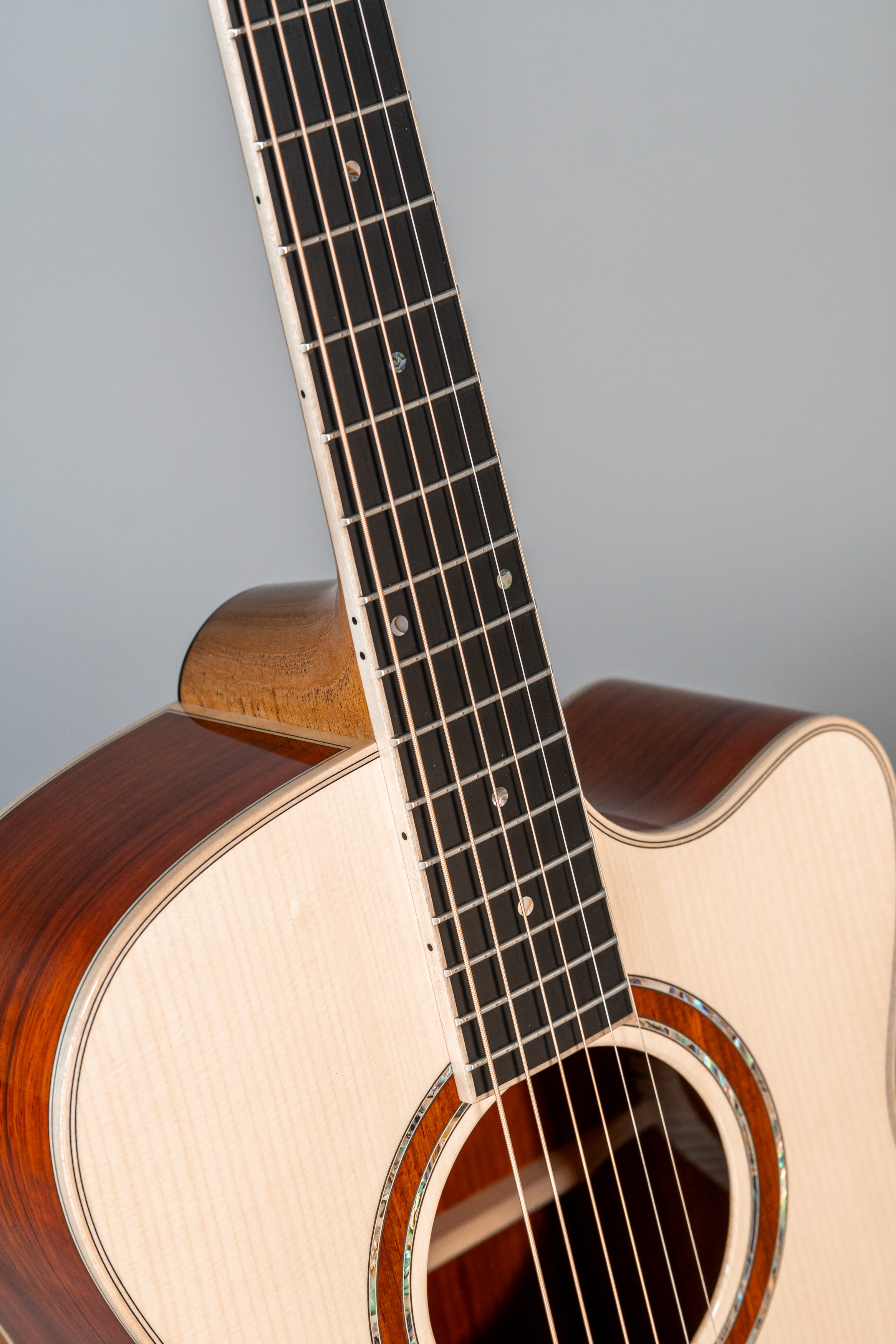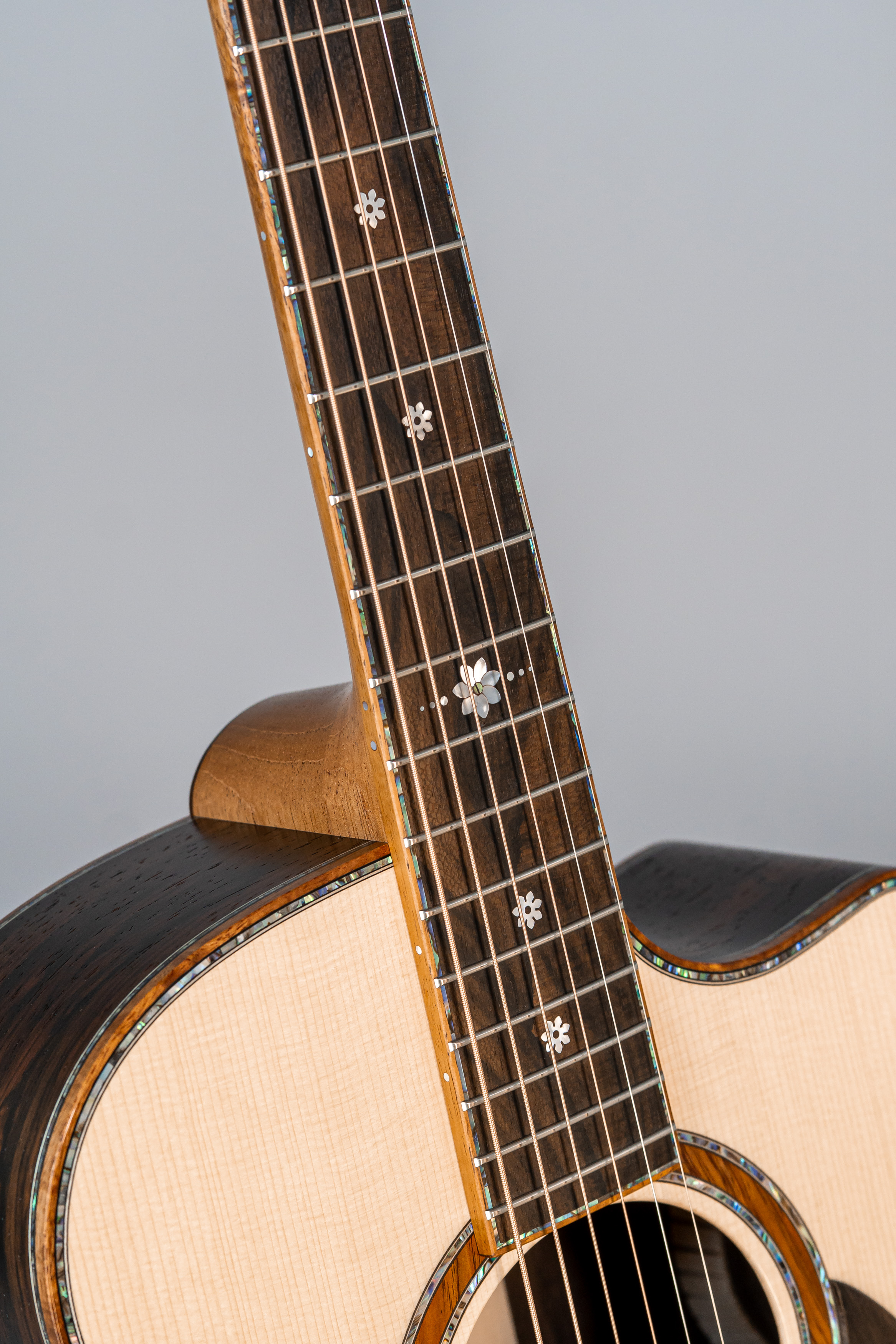 - Abalone-Einfassung der Decke bei Cutaway-Gitarren