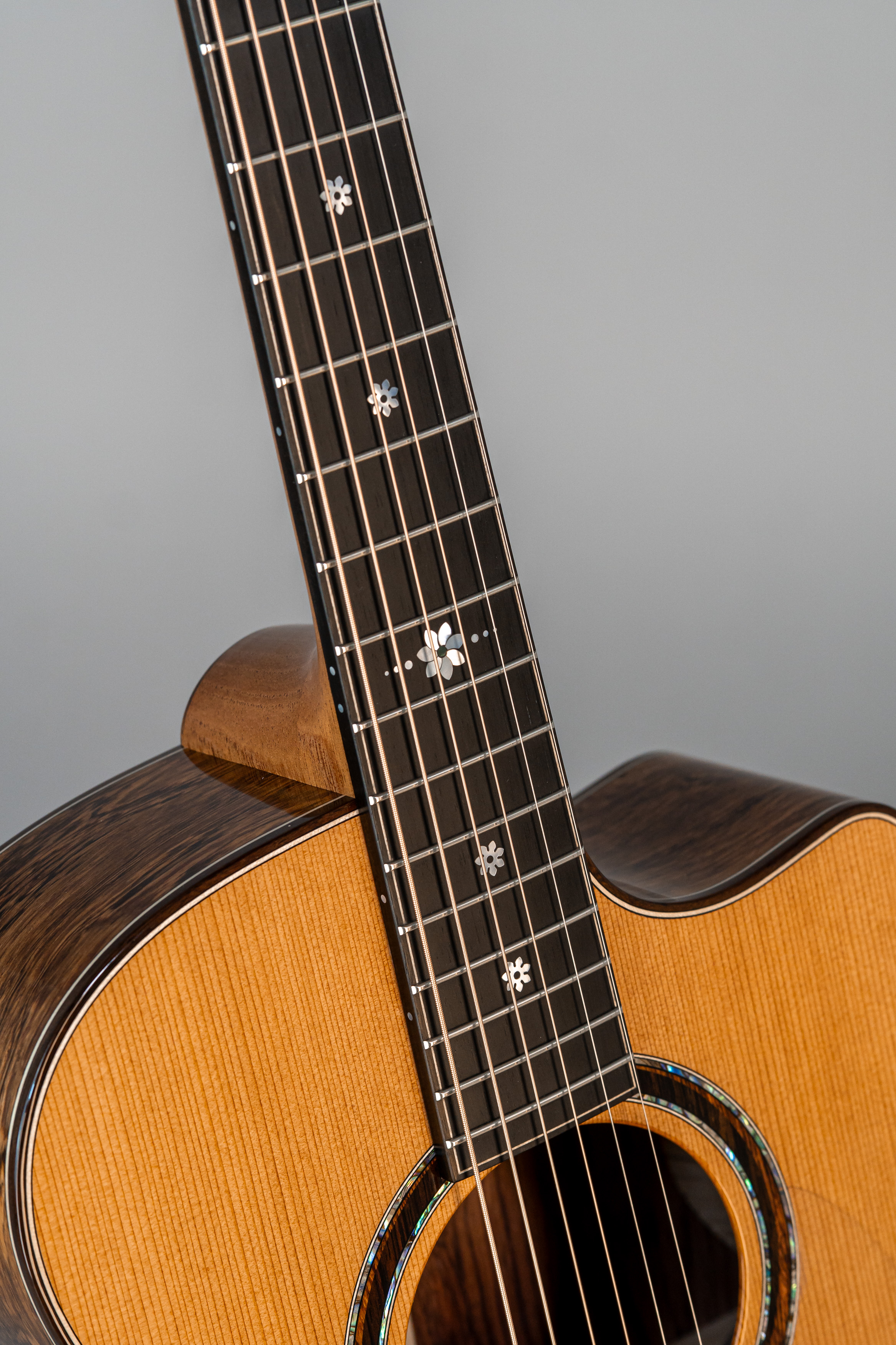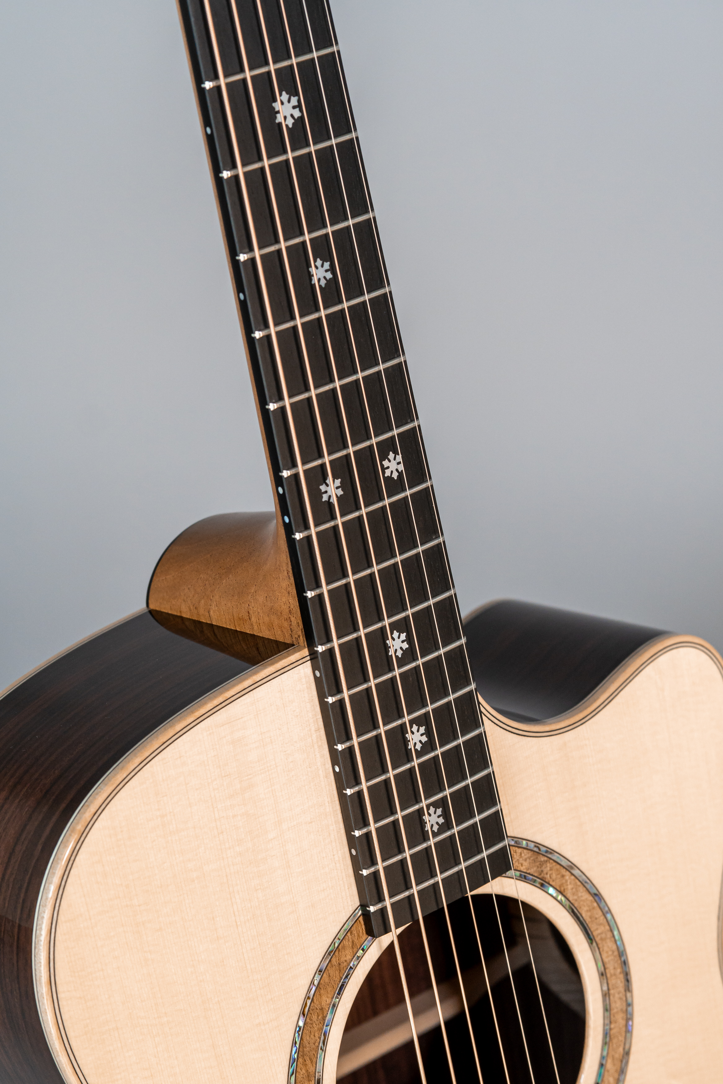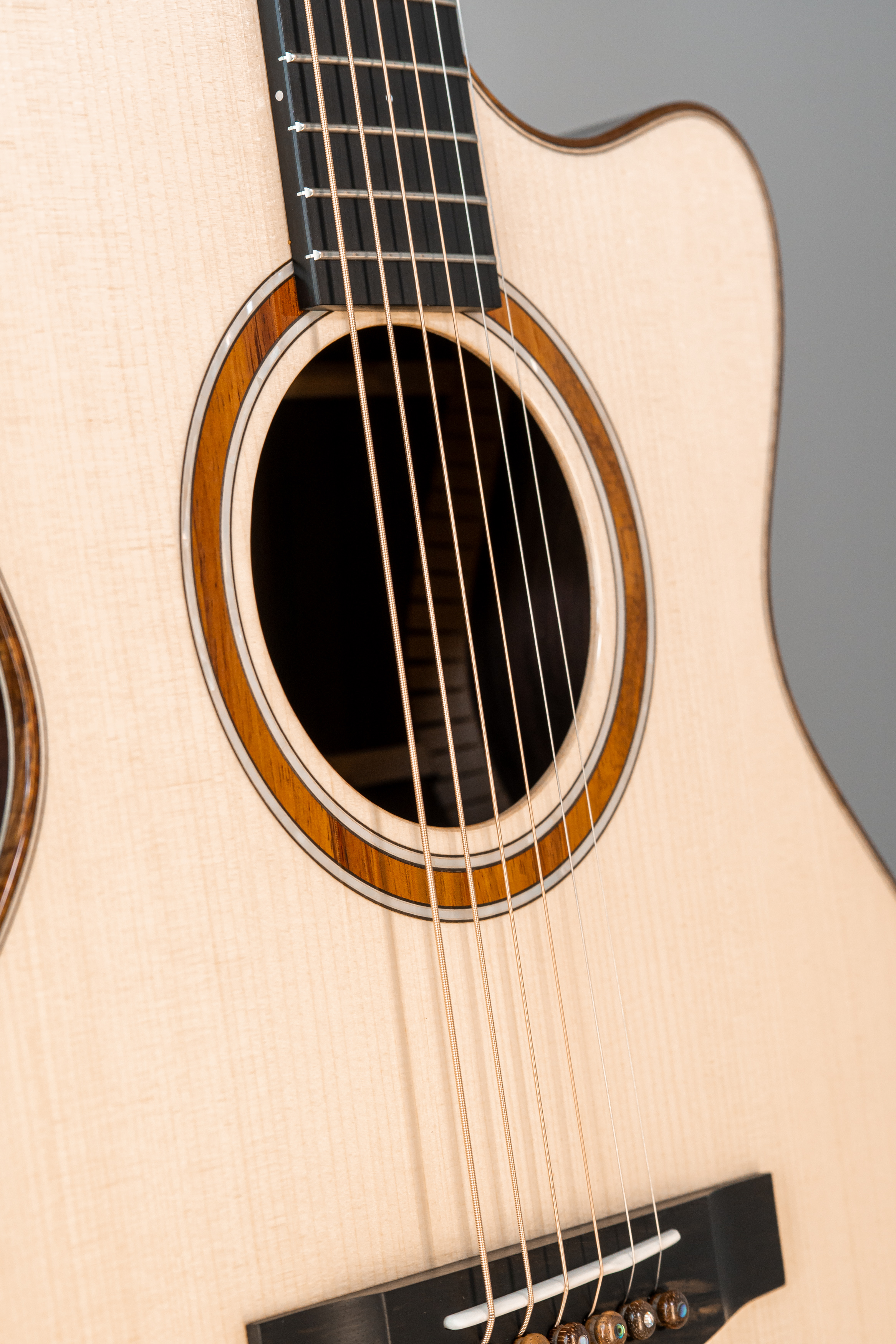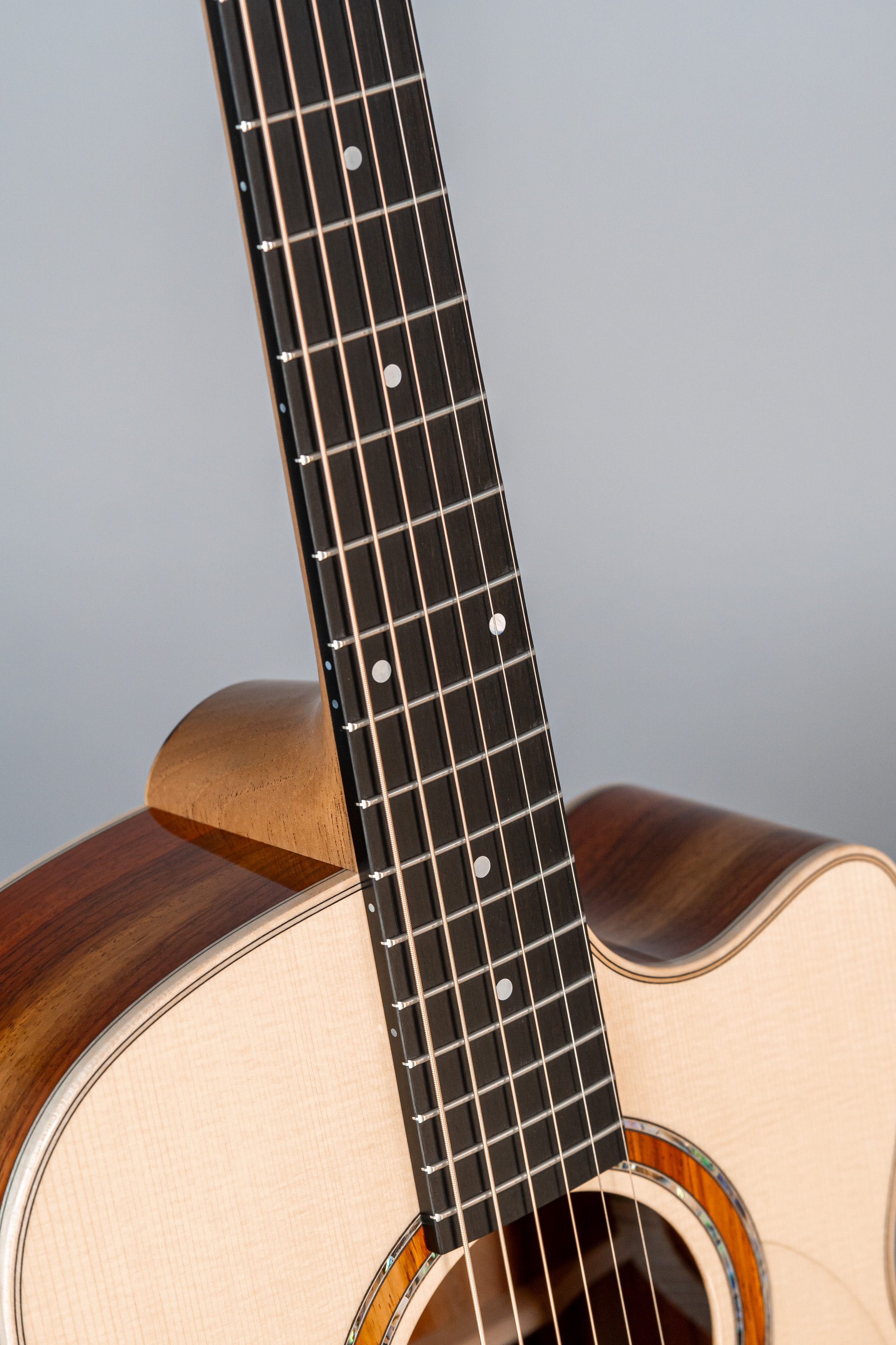 - Abalone-Einfassung der Decke bei Cutaway-Gitarren