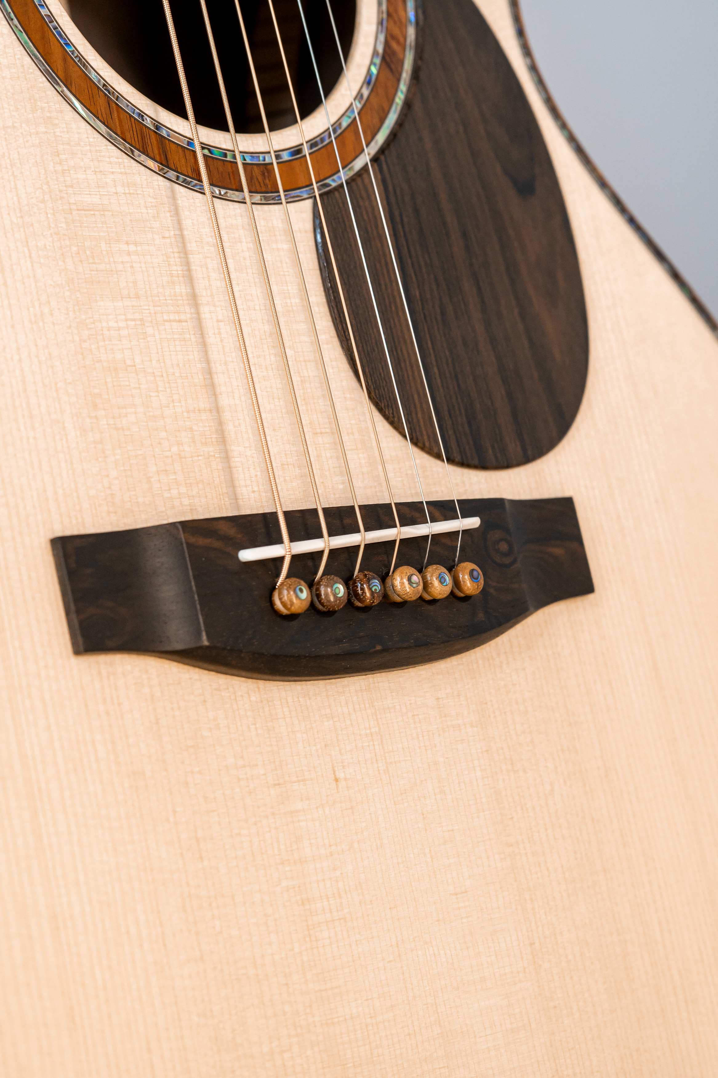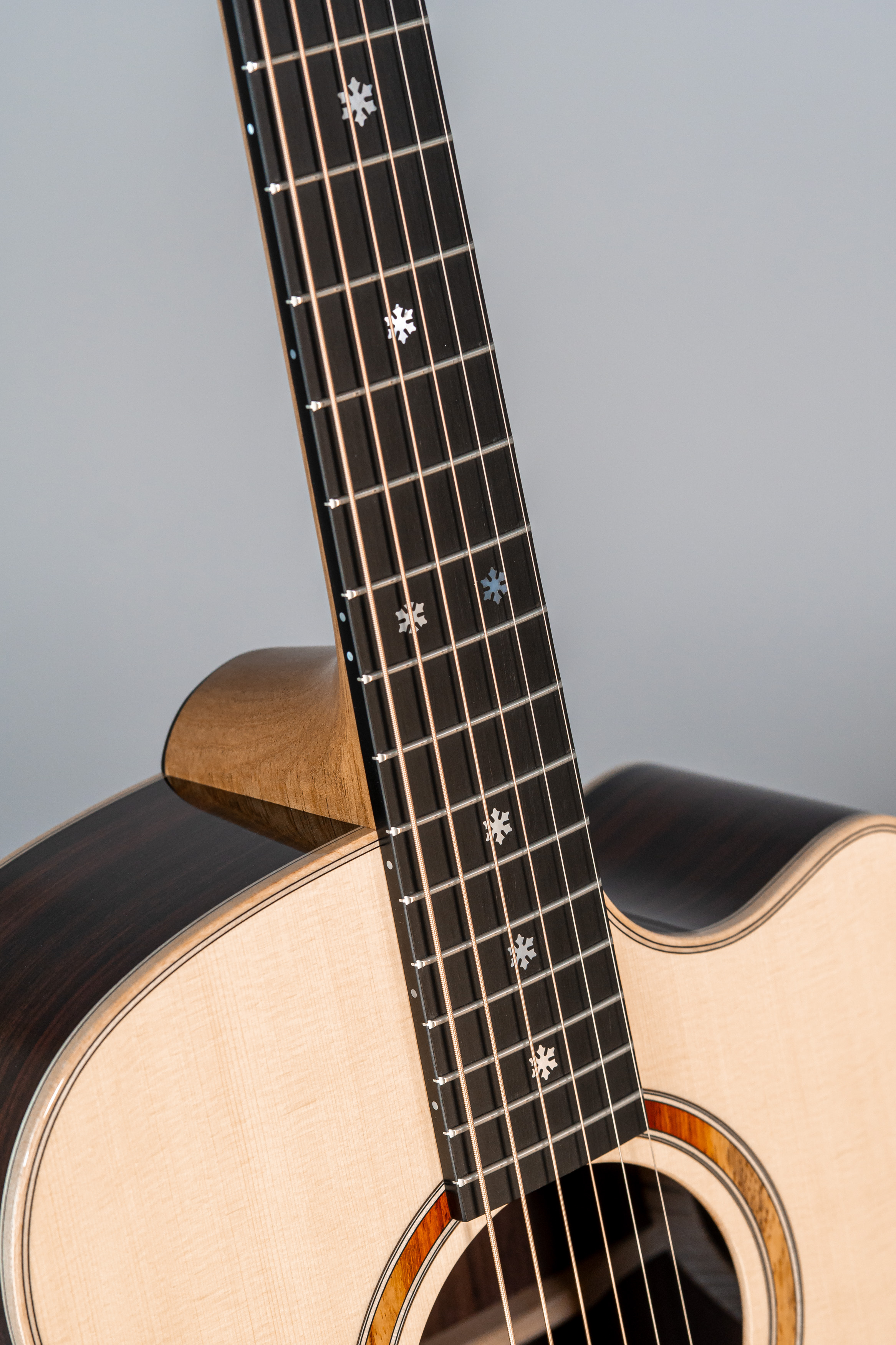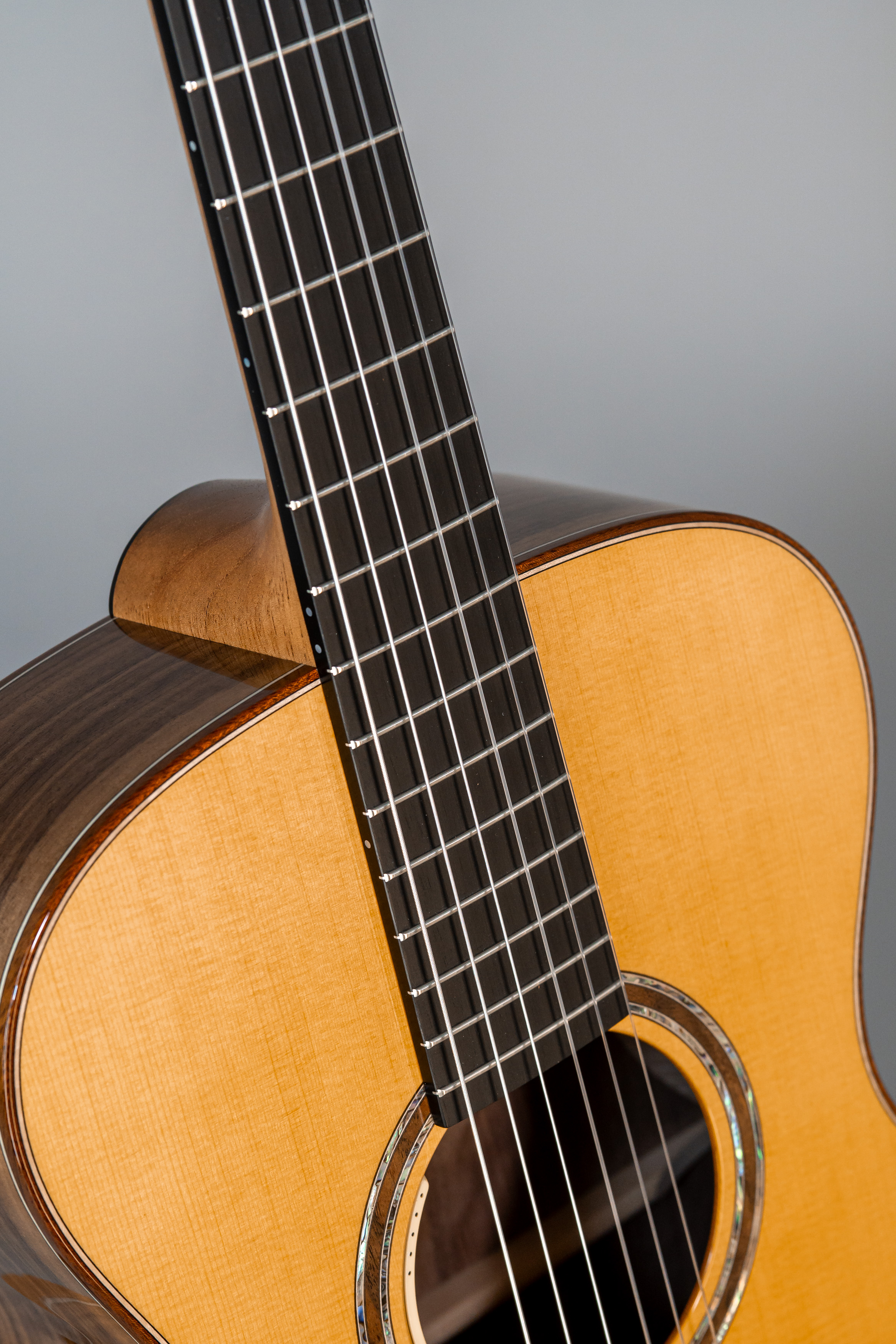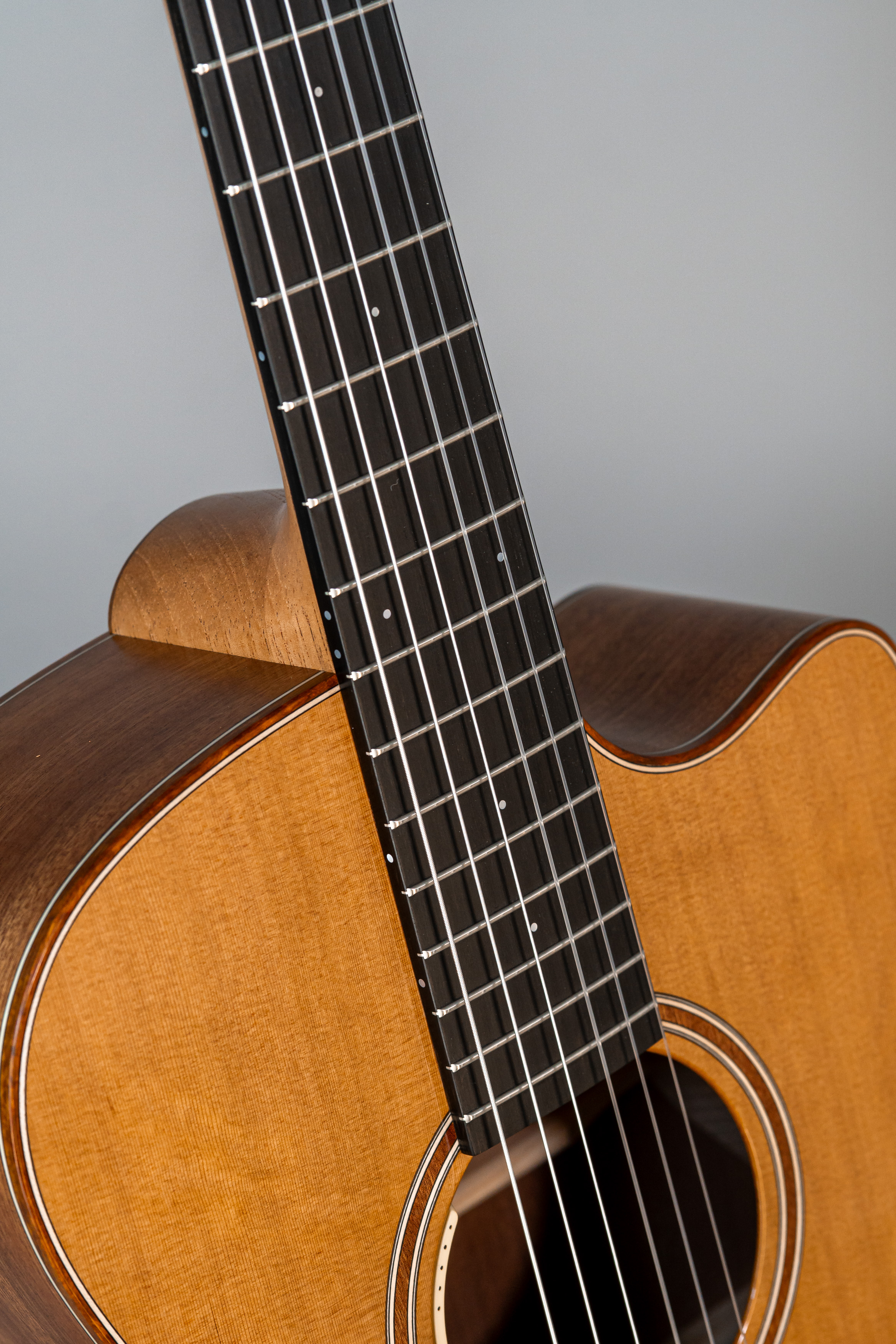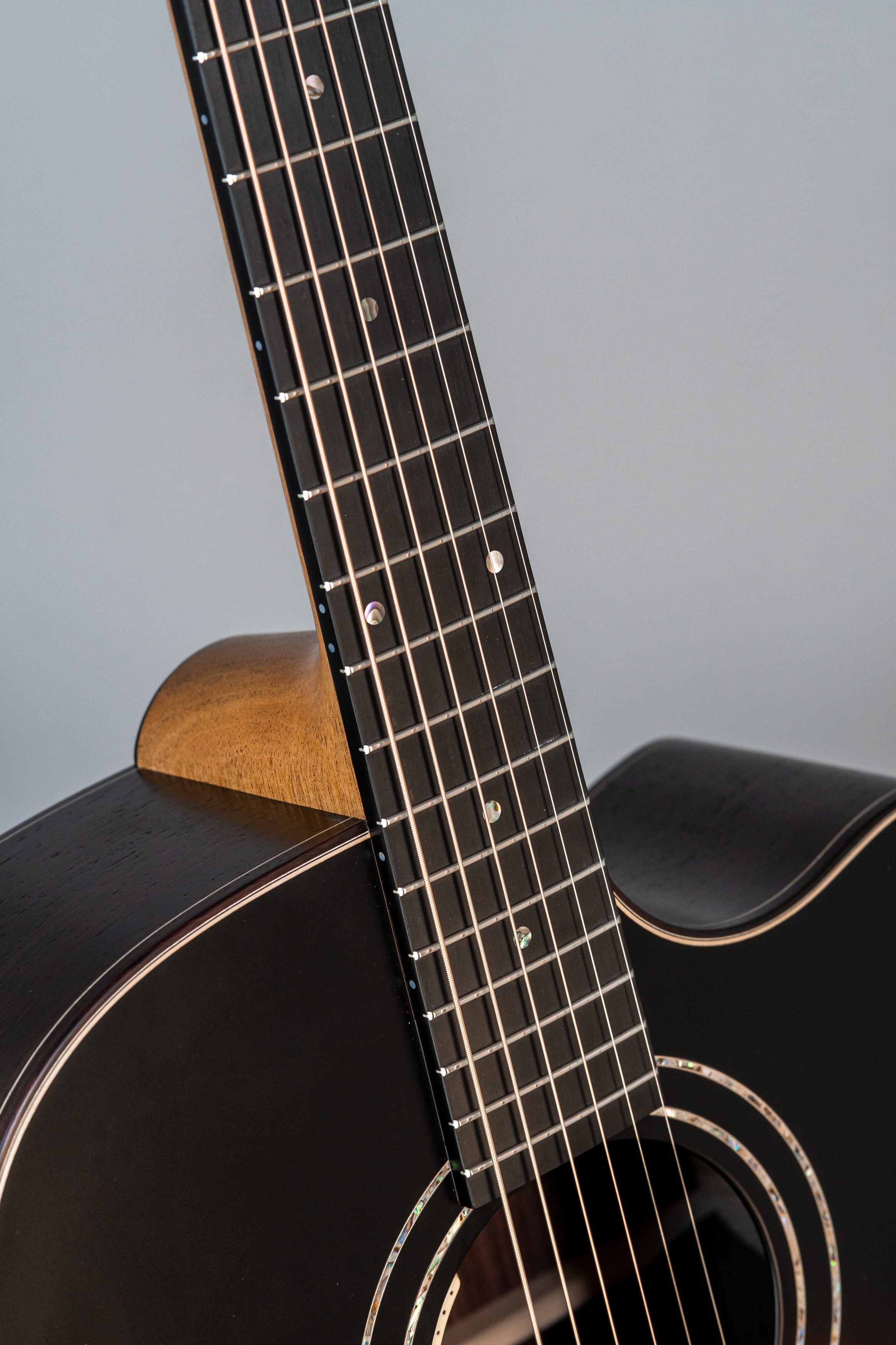 - Abalone-Einfassung der Decke bei Cutaway-Gitarren