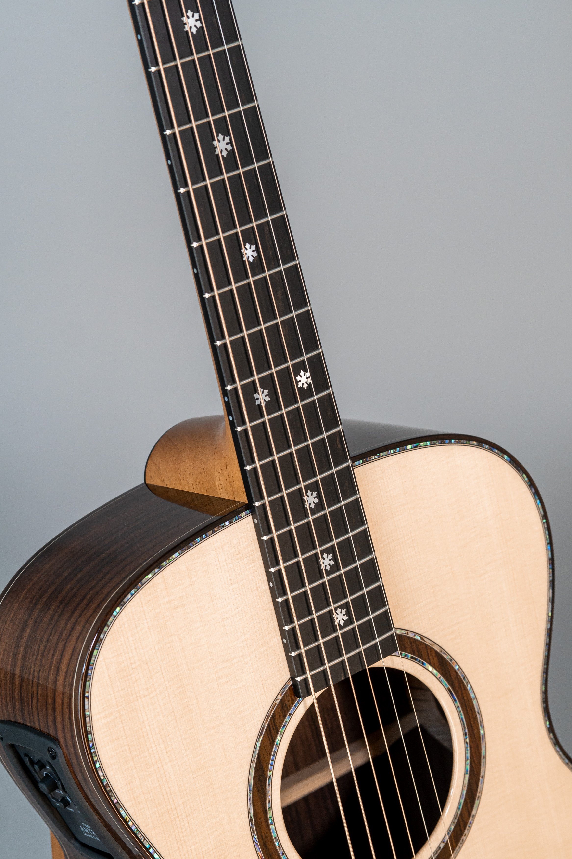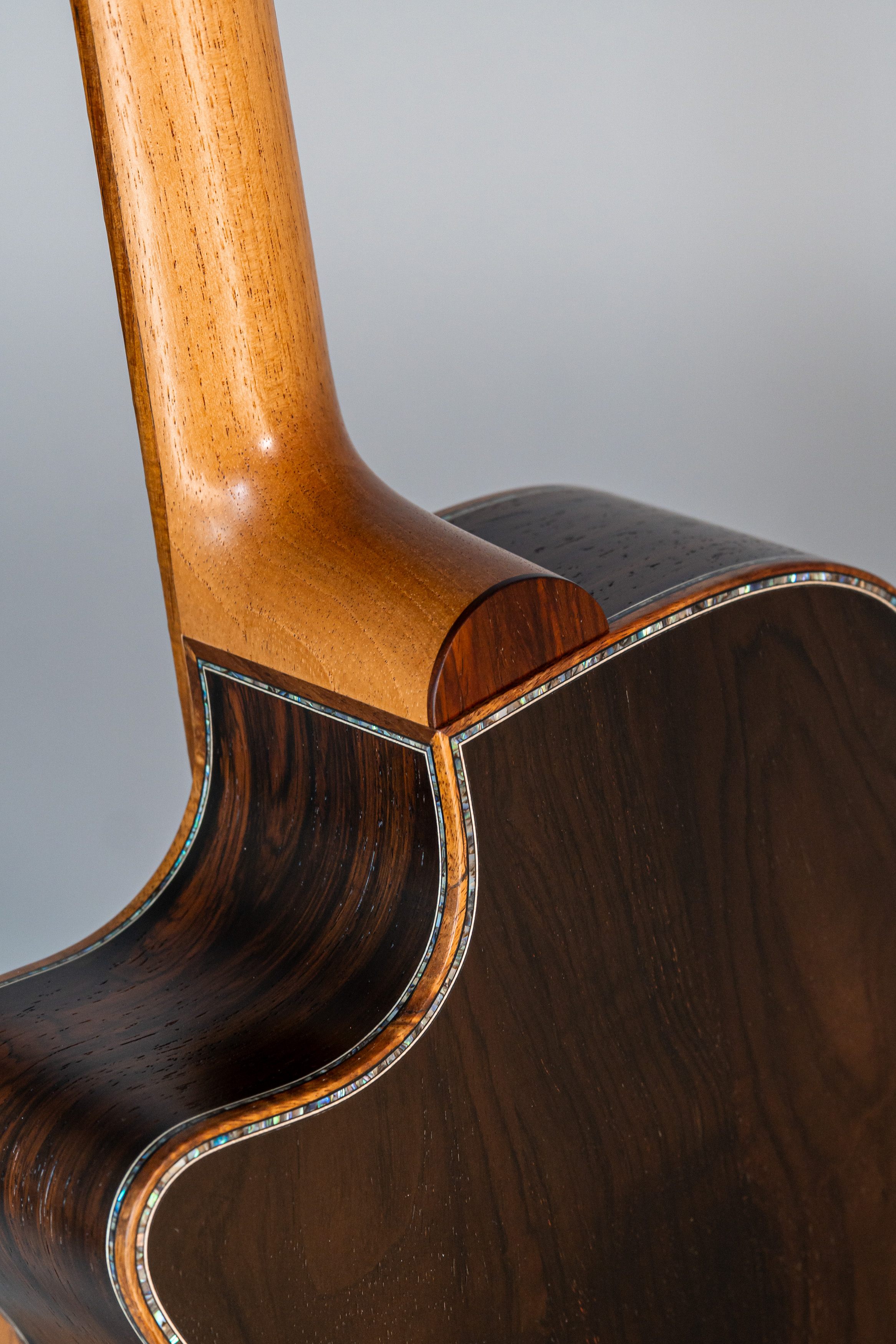 - Abalone-Einfassung der Decke, Zargen und Boden bei Cutaway-Gitarren