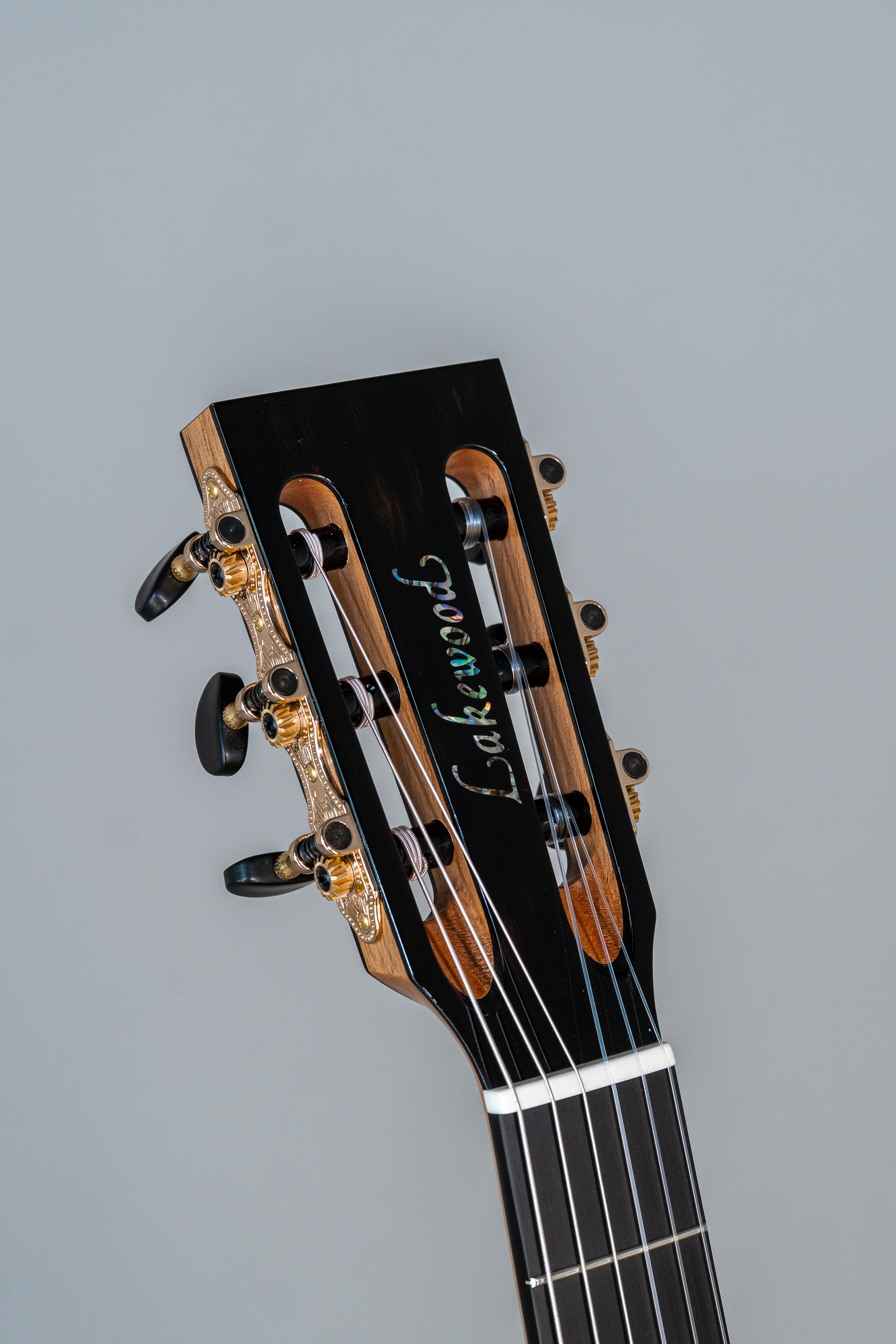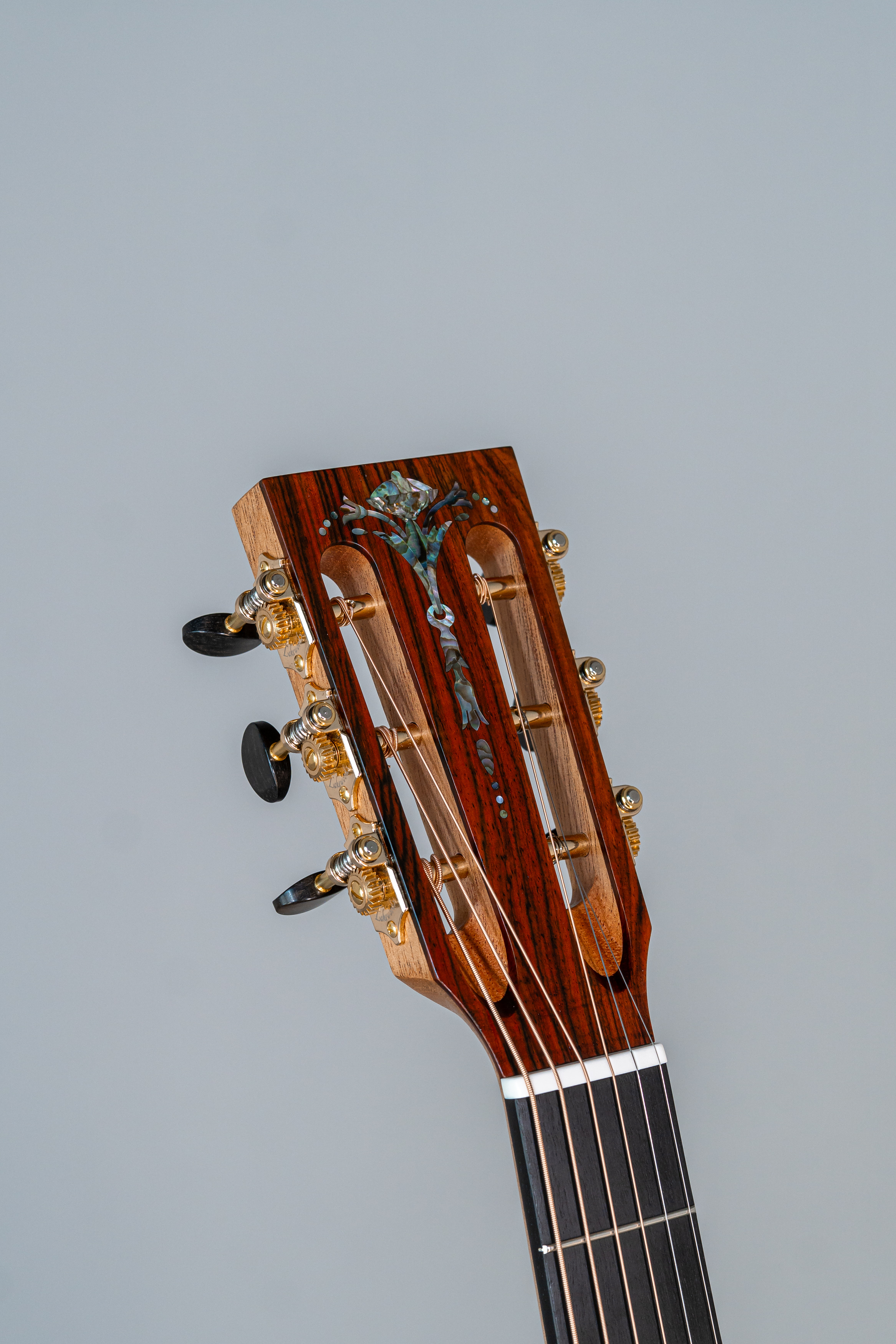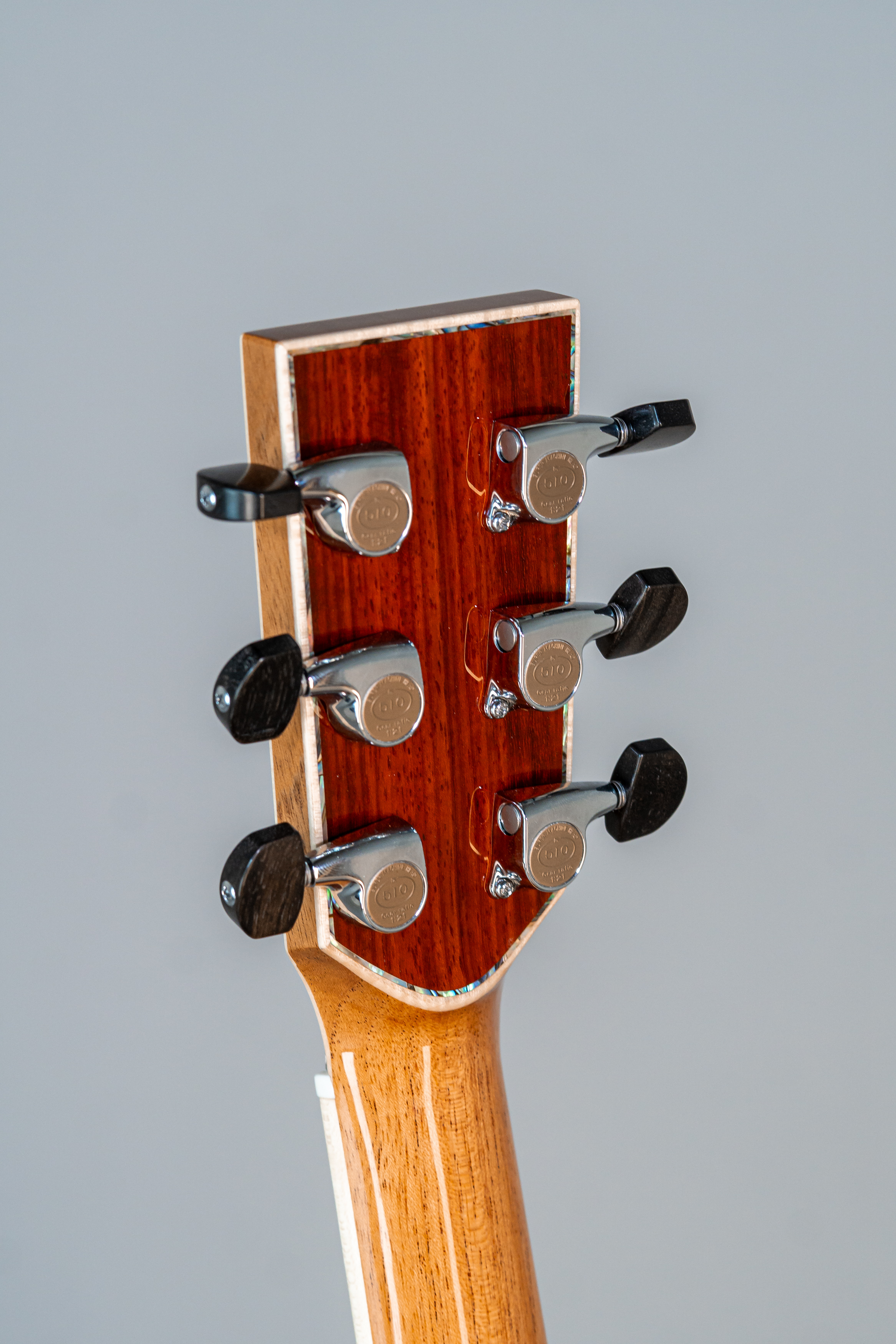 - Kopfplatte auf der Kopf-Rückseite wie Vorderseite mit Rand und Abalone-Einfassung